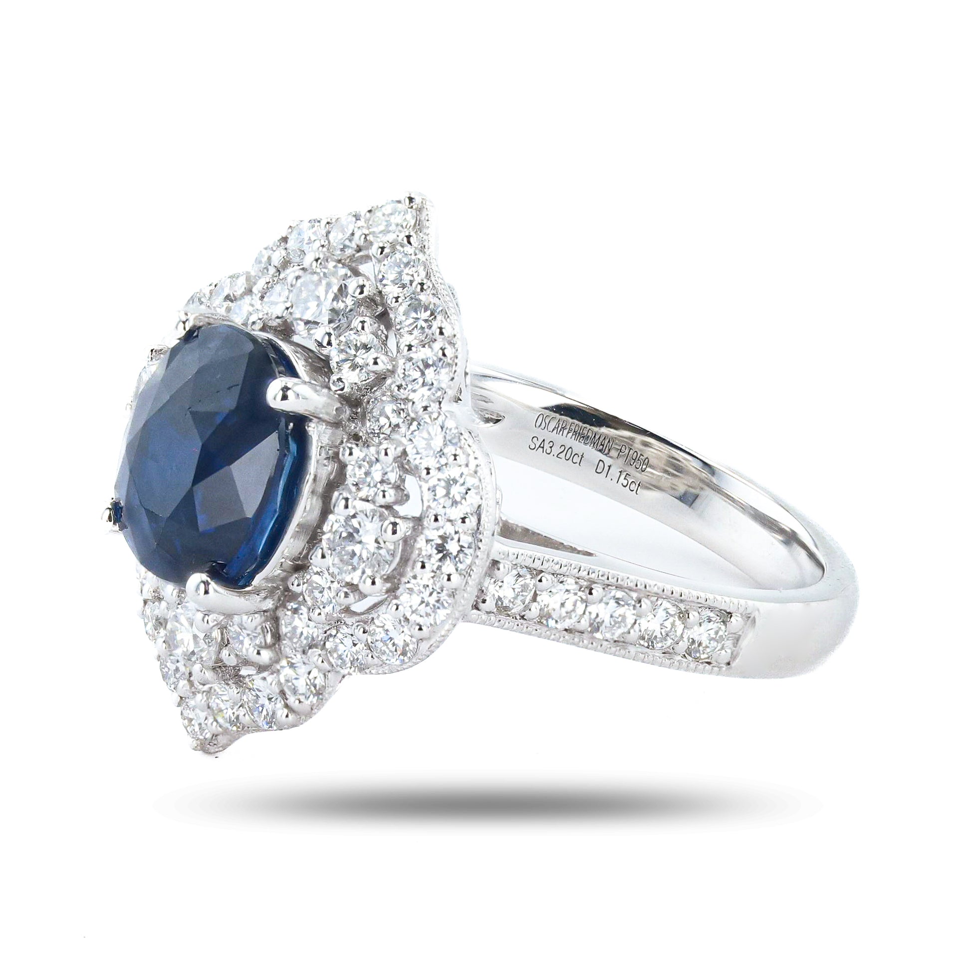 3.20ct UNHEATED Blue Sapphire and 1.15ctw Diamond Platinum Ring (GIA CERTIFIED)